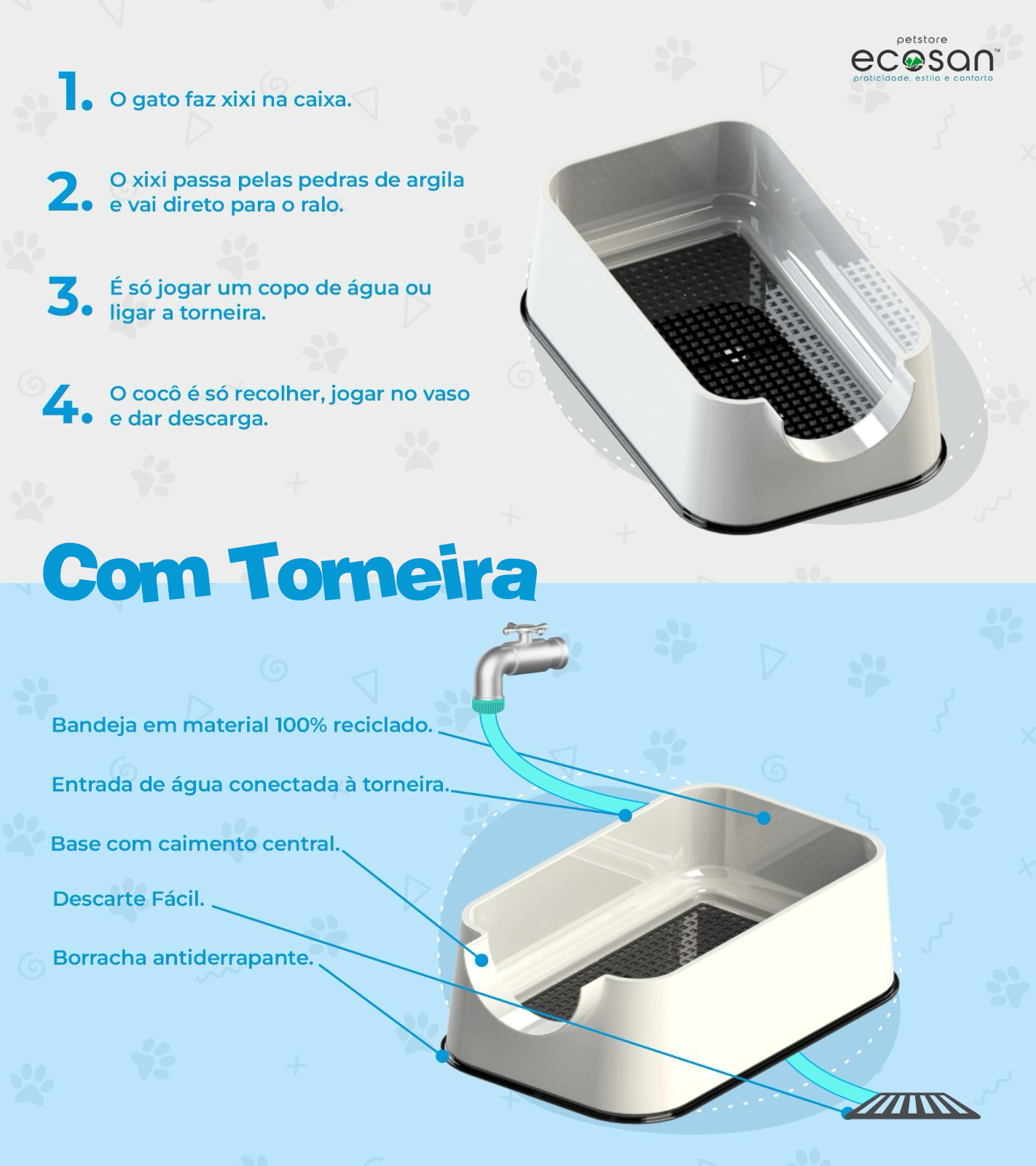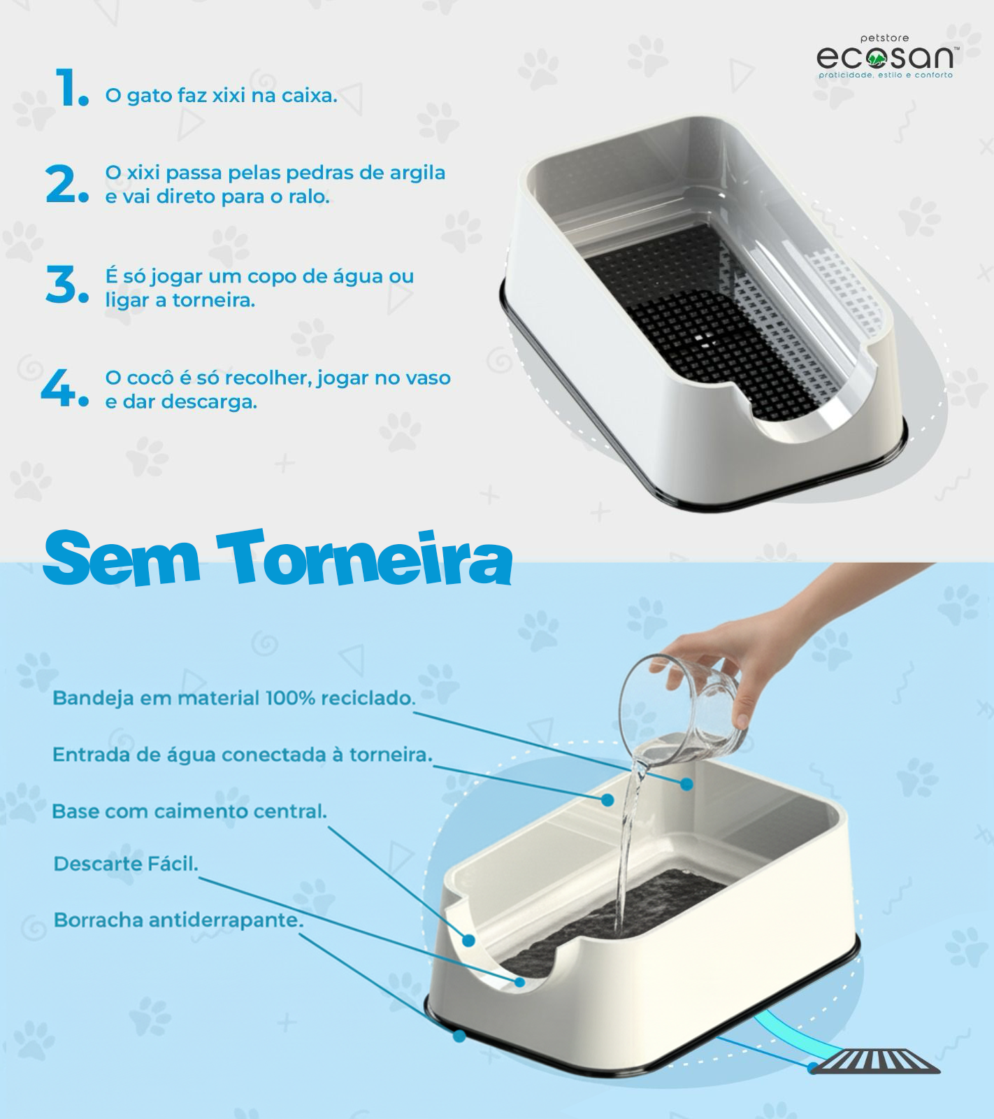 O Sanitário Inteligente para Gatos Ecosan é a solução definitiva: mais higiênico, econômico e saudável para o seu pet e para o seu lar.